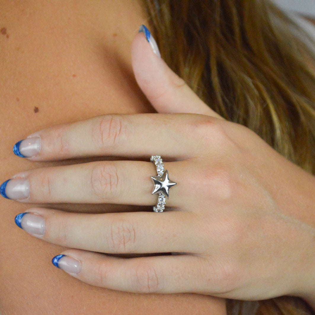 Anillo chunky de estrella con pedrería