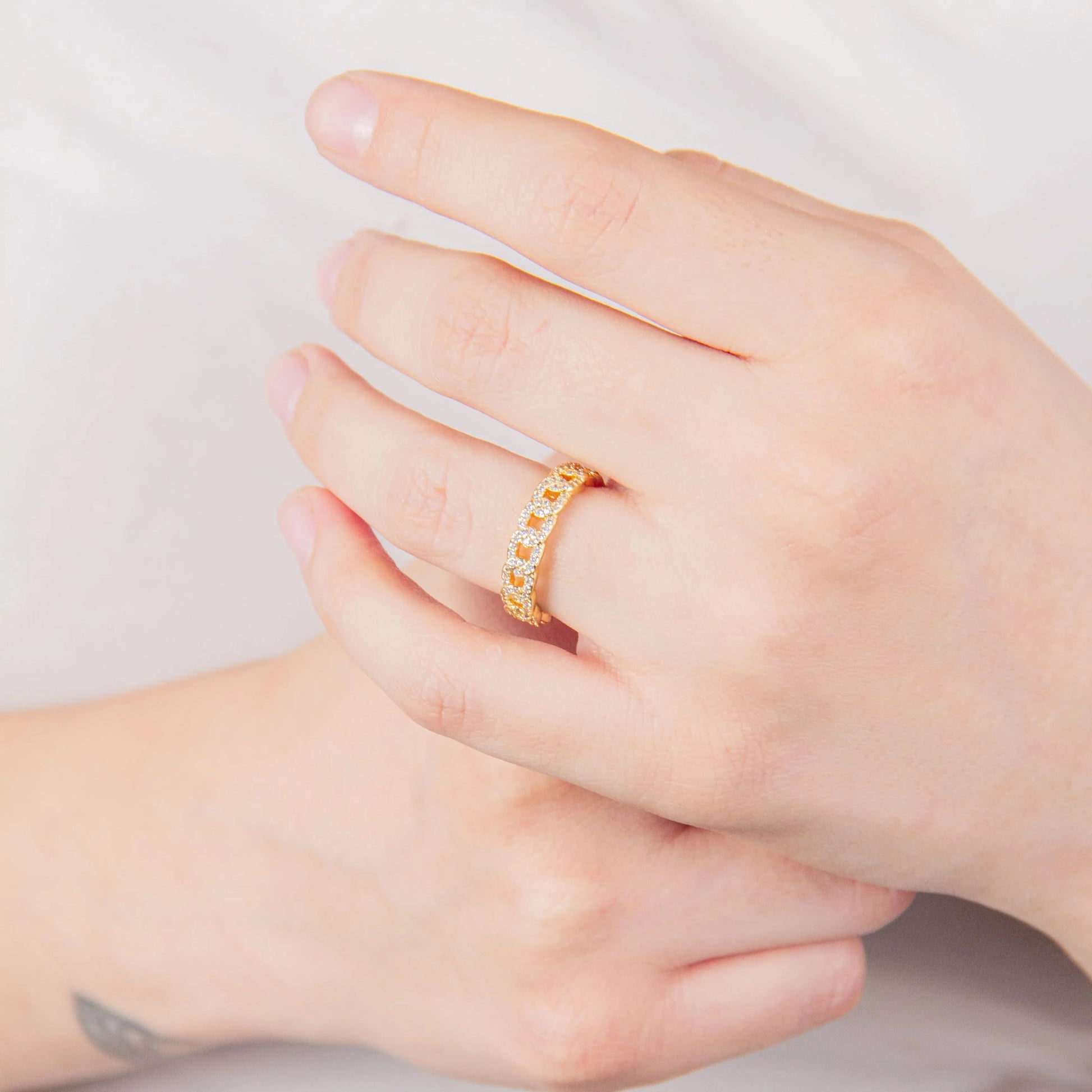 Anillos de eslavones chicos con zirconias Material: Oro laminado 18k