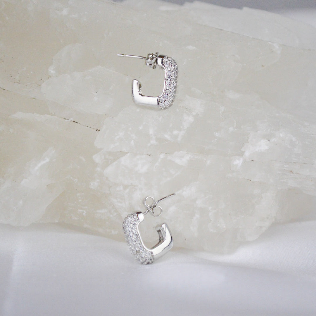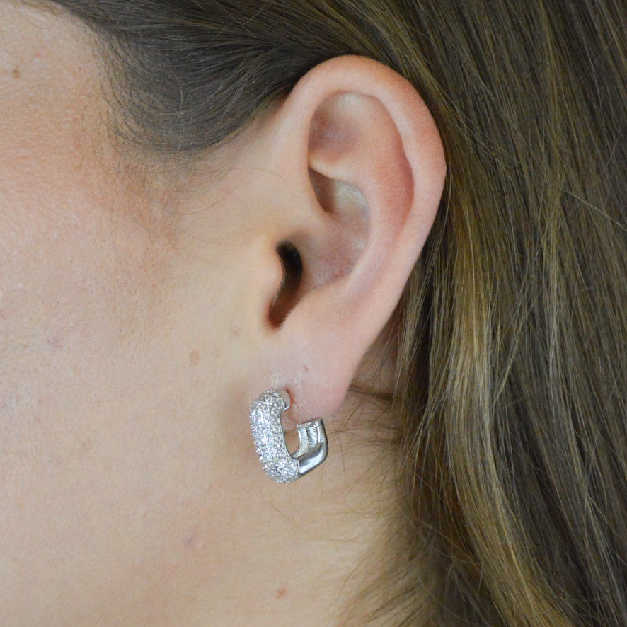 Media arracada cuadrada chuncky con pedrería