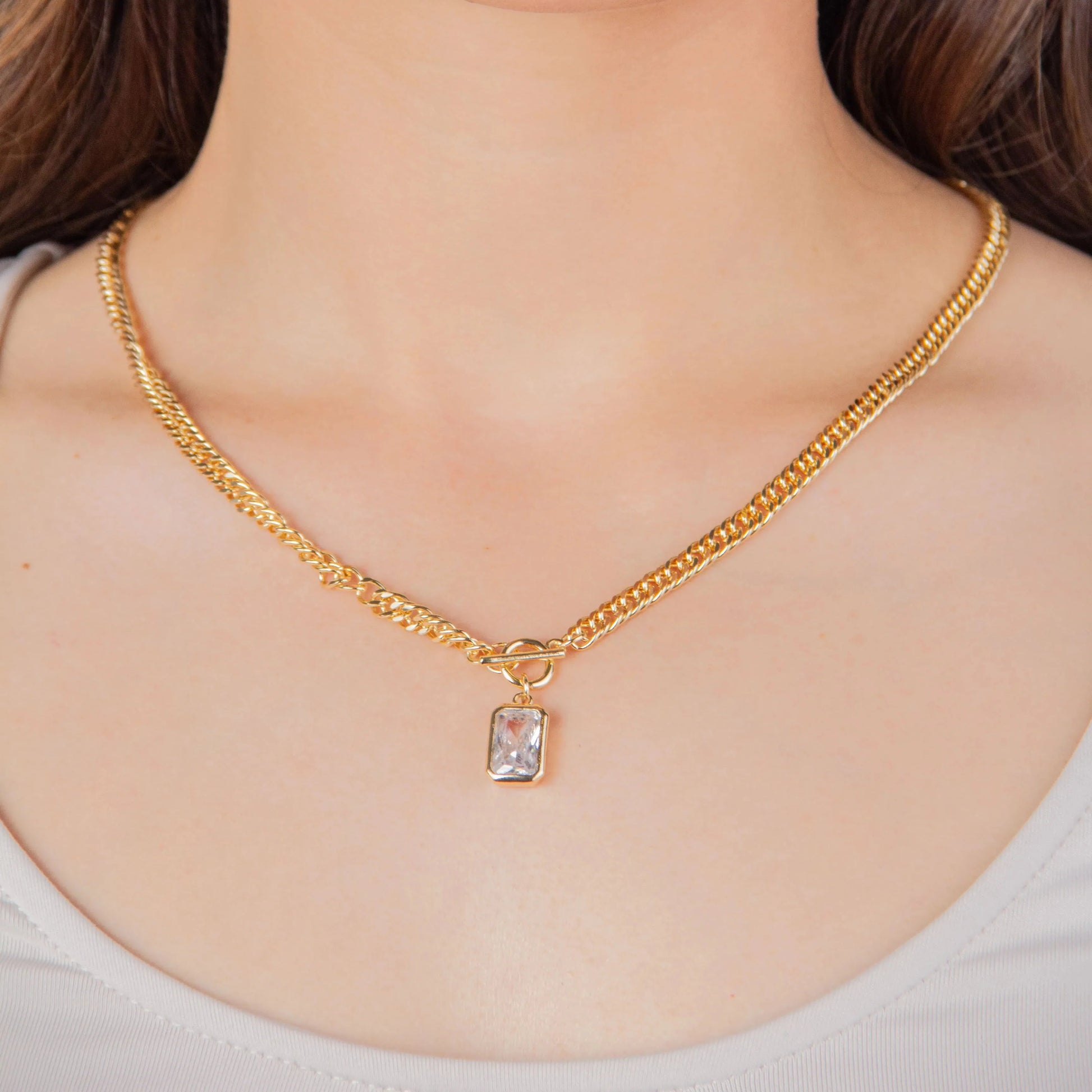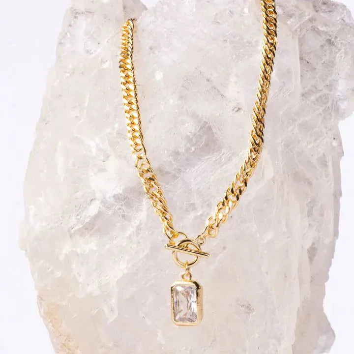 Collar de eslabones con dije de piedra rectangular